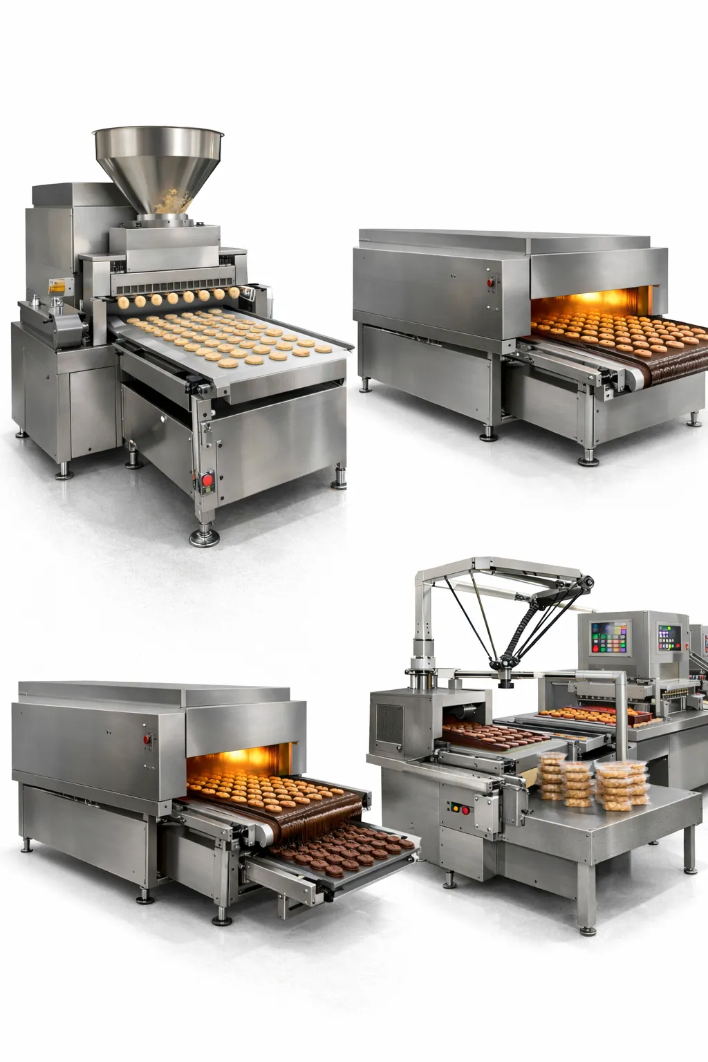🔹 Descripción general Equipos industriales diseñados para la dosificación automática y formación de galletas, garantizando alta precisión, uniformidad y eficiencia en procesos de producción continua.