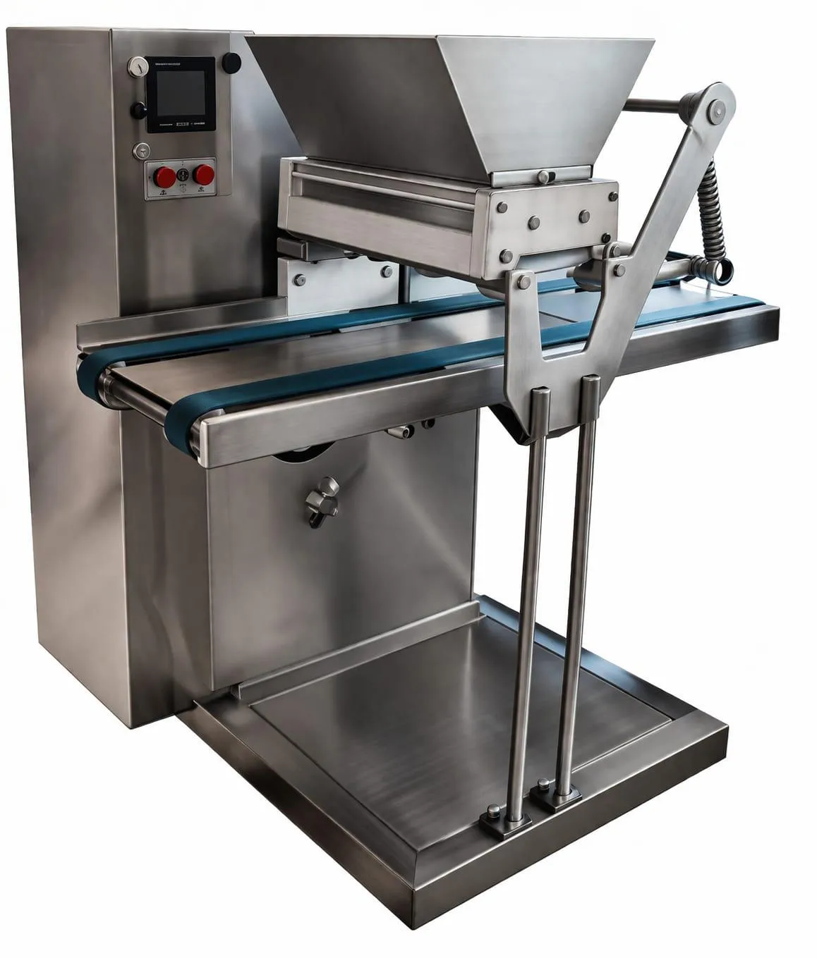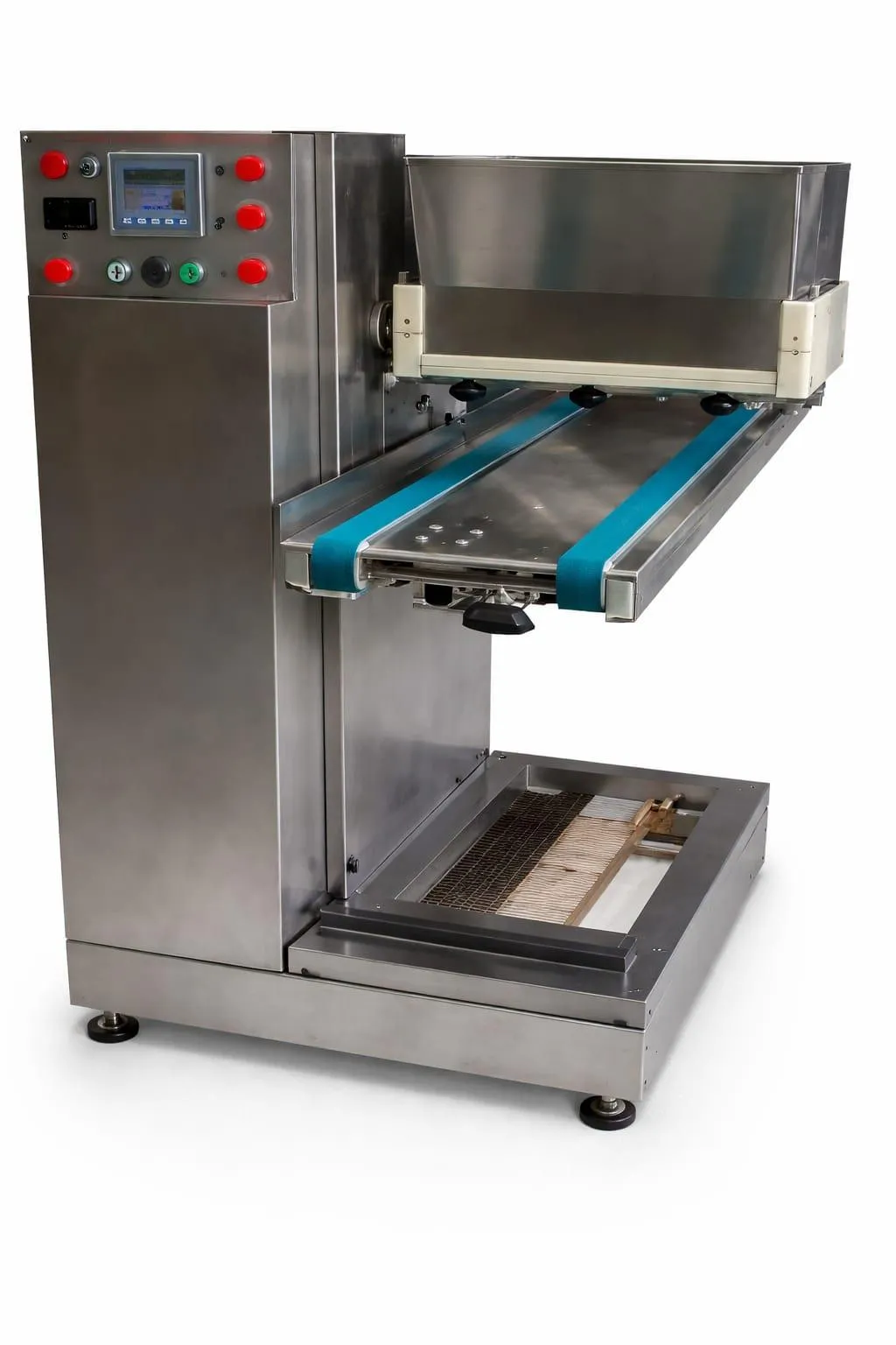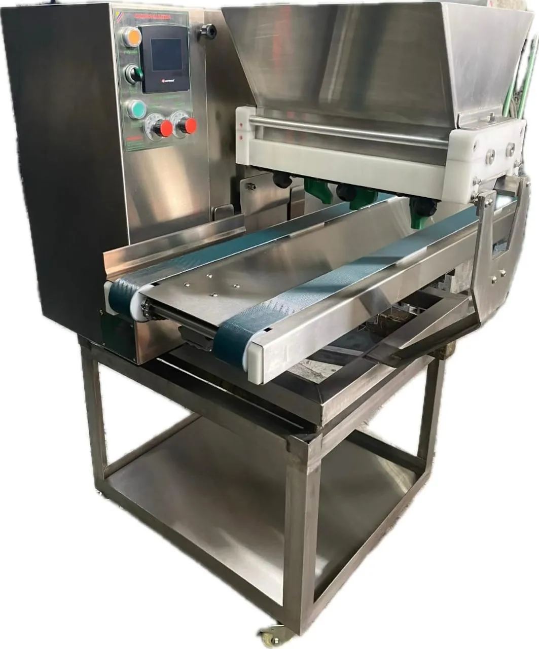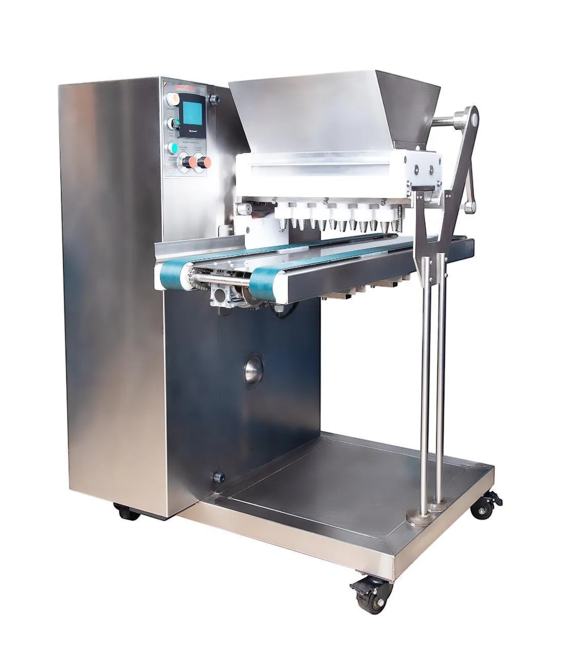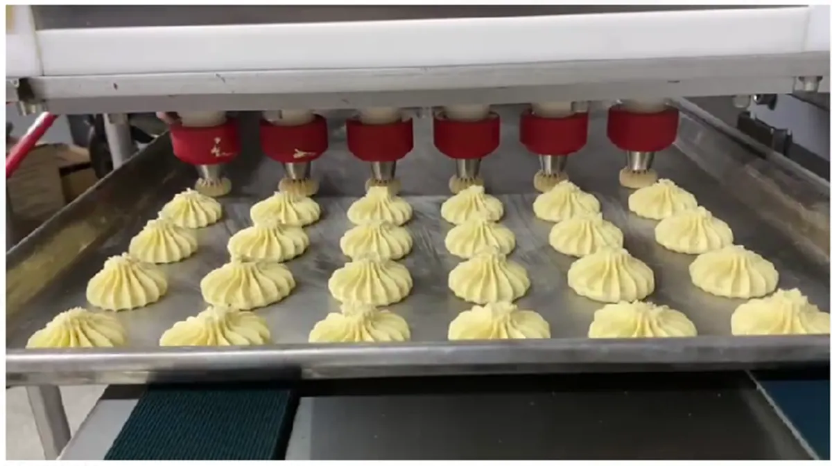 👉 Es una máquina automática que dosifica, forma y transporta galletas listas para hornear.